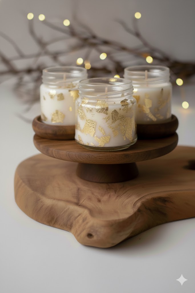 Ao ser acesa, a chama cria um efeito mágico, fazendo as folhas de ouro reluzirem e projetarem um brilho quente e elegante, transformando a atmosfera do seu ambiente em um cenário de puro glamour. É o detalhe chique e elegante que faltava.