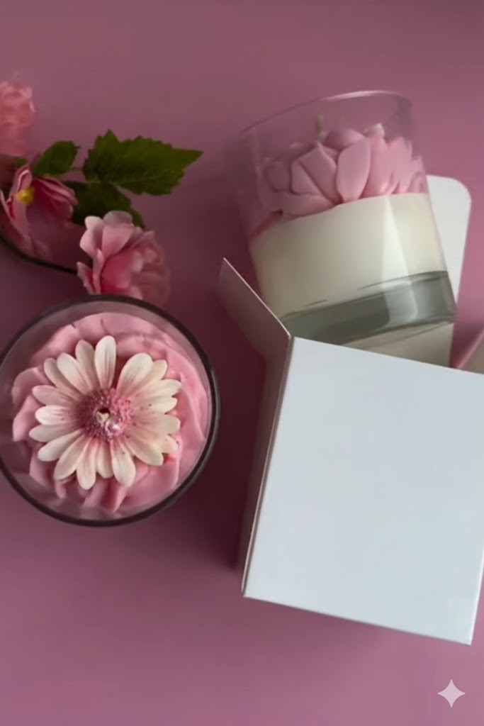 🌼 Topper Floral Exclusivo: O toque final de encanto fica por conta da delicada flor de Margarida em cera, que coroa sua vela. O miolo da flor é harmoniosamente matizado para combinar perfeitamente com a cor do chantilly, criando um visual deslumbrante e sofisticado.